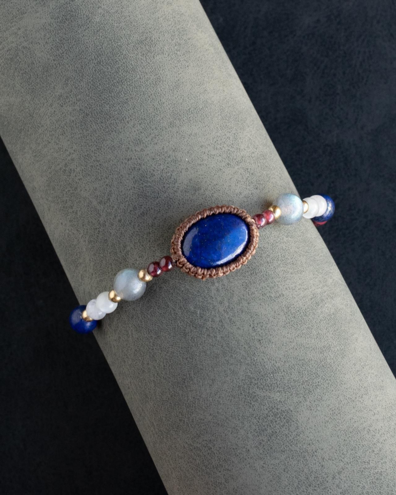 アフガニスタン産の小粒のラピスラズリを使ったマクラメブレスれレットです。