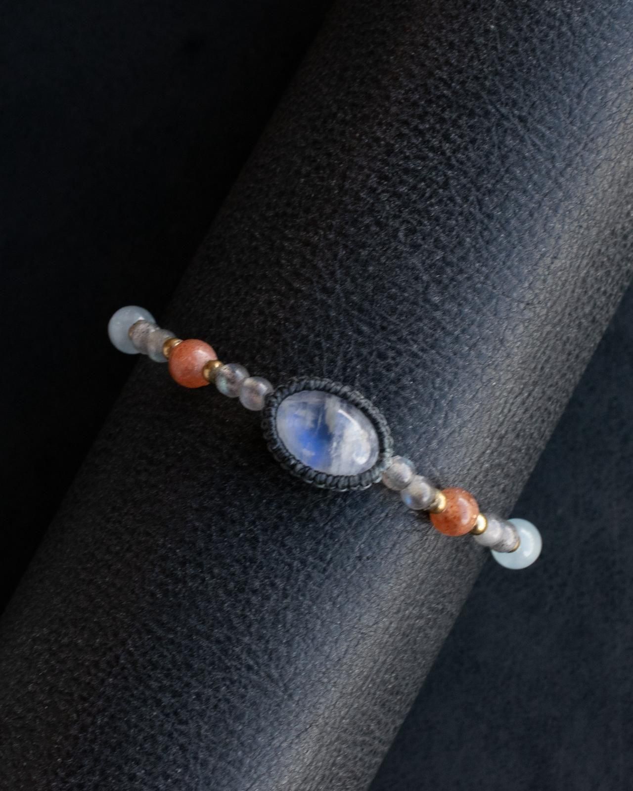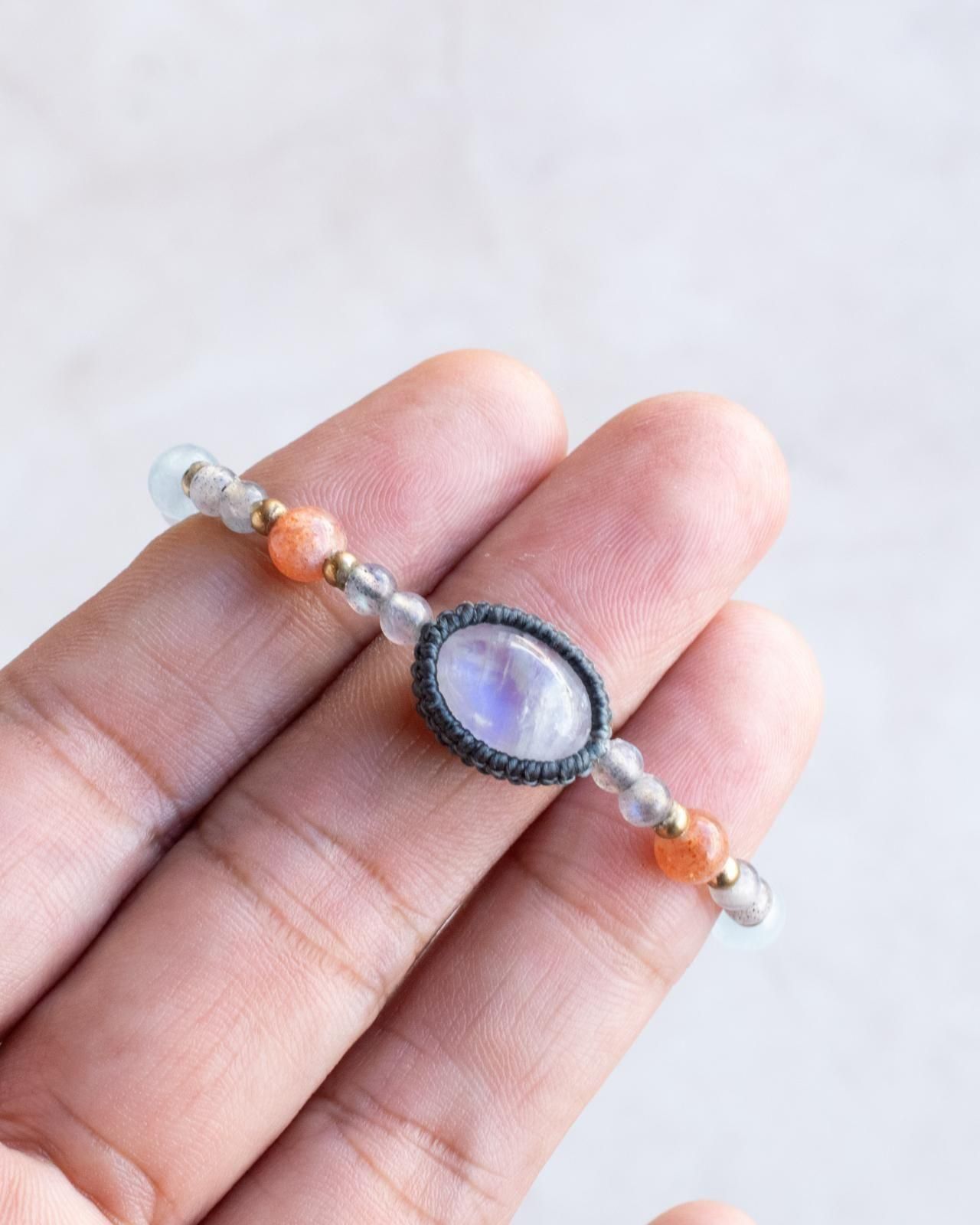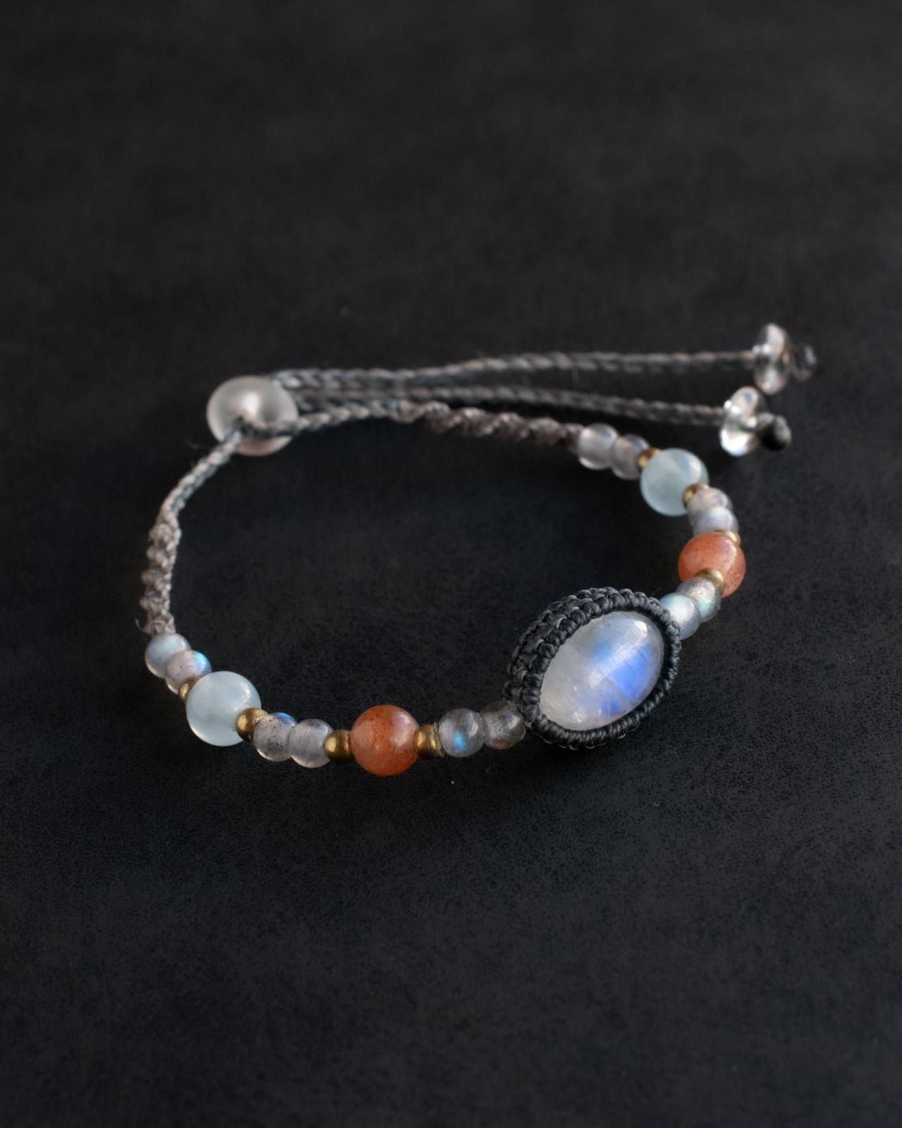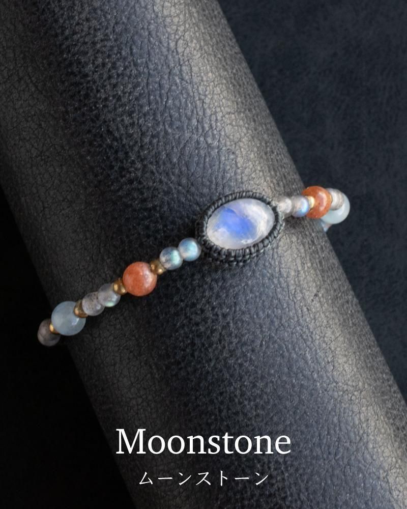 インド産の小粒のムーンストーンを使ったマクラメブレスレットです。
