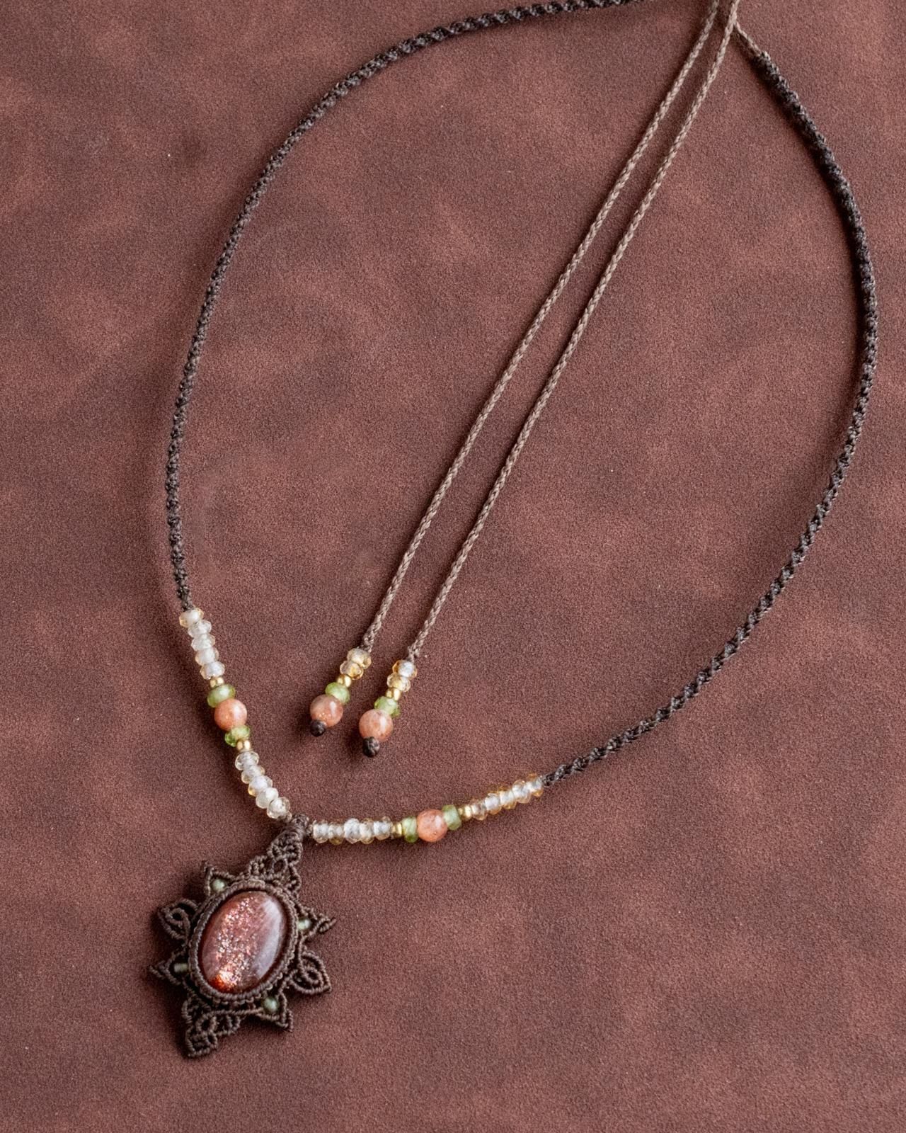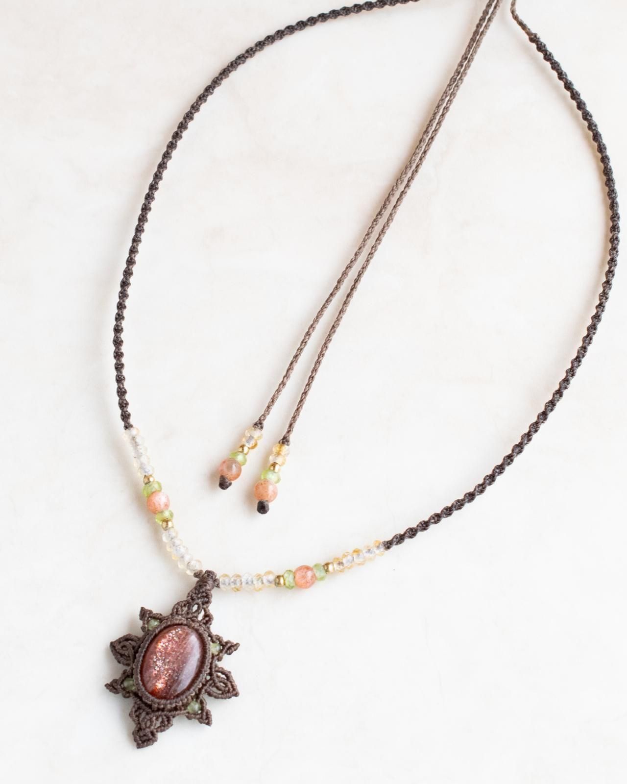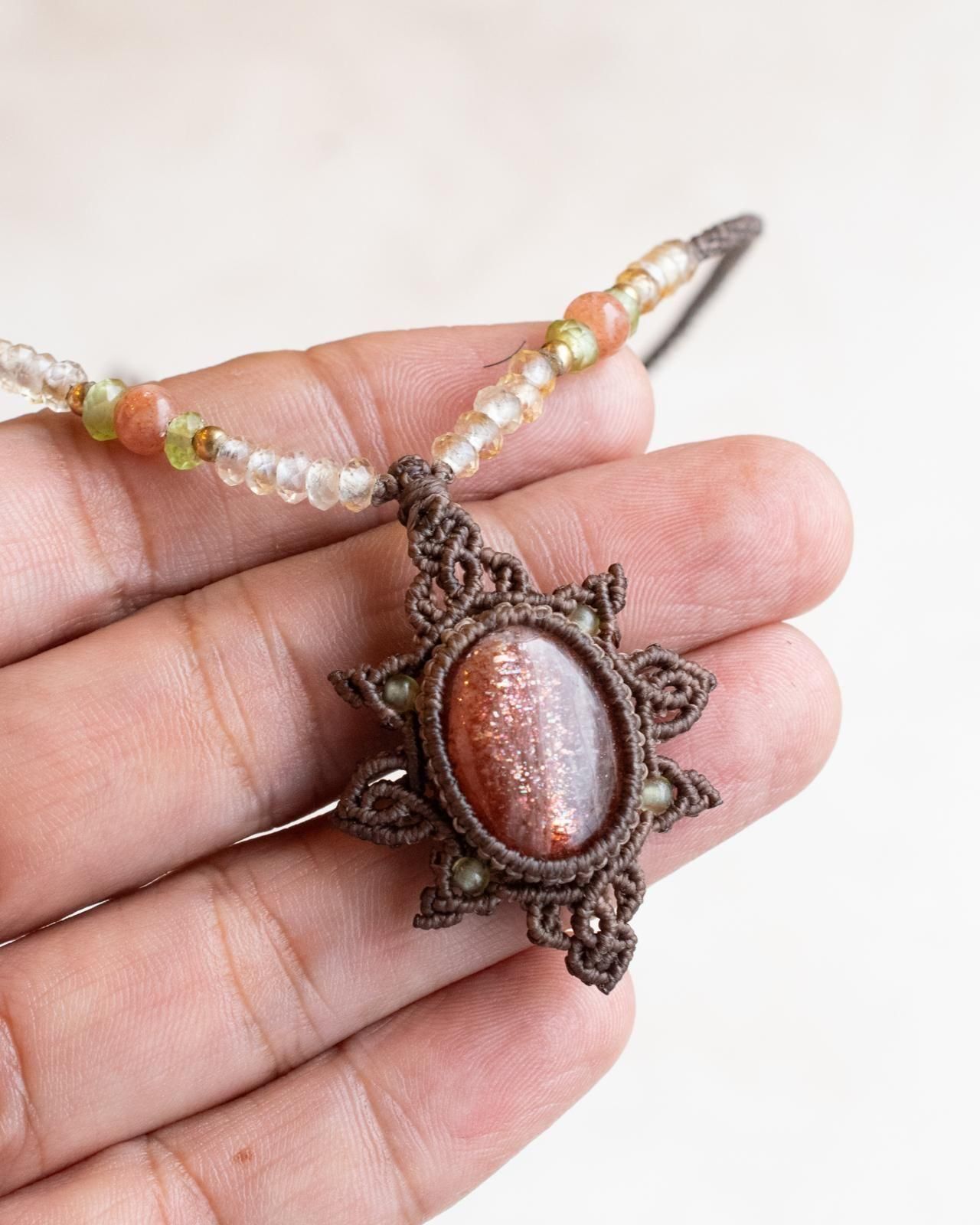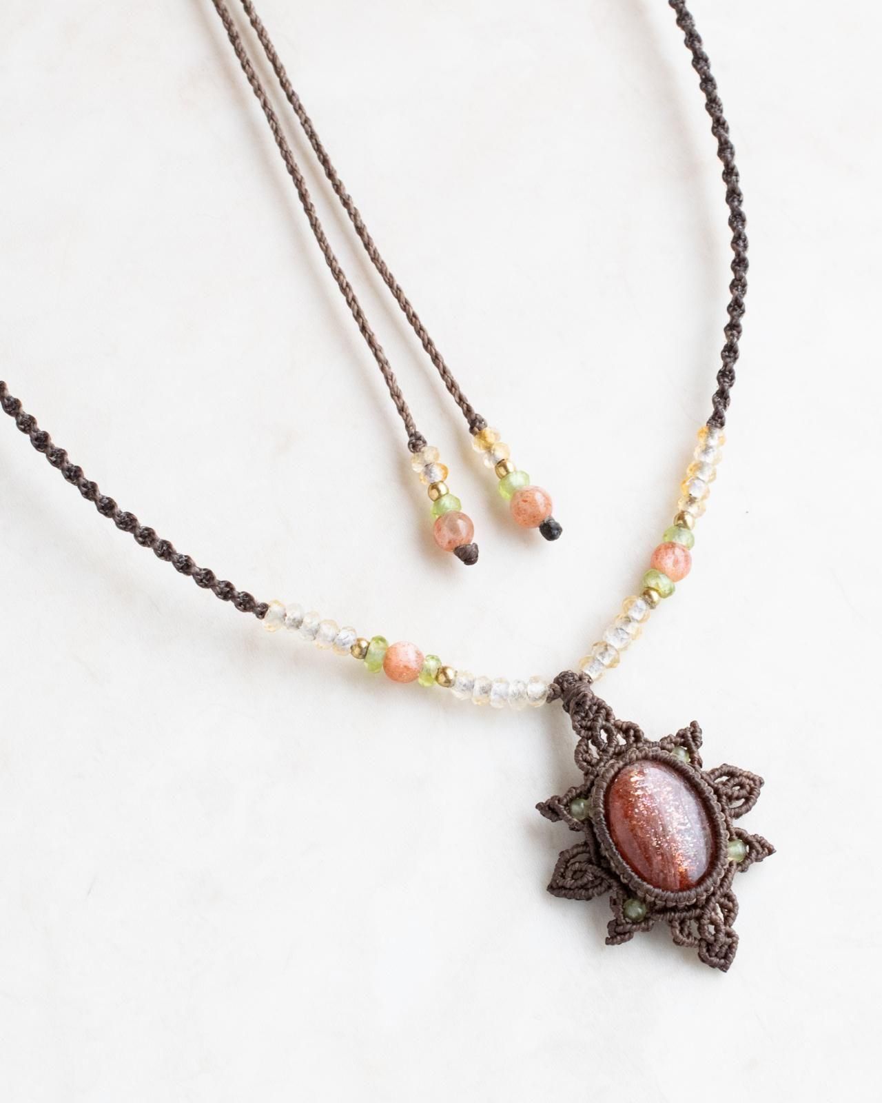 インド産のサンストーンを使ったマクラメペンダントを使ったマクラメネックレスです。