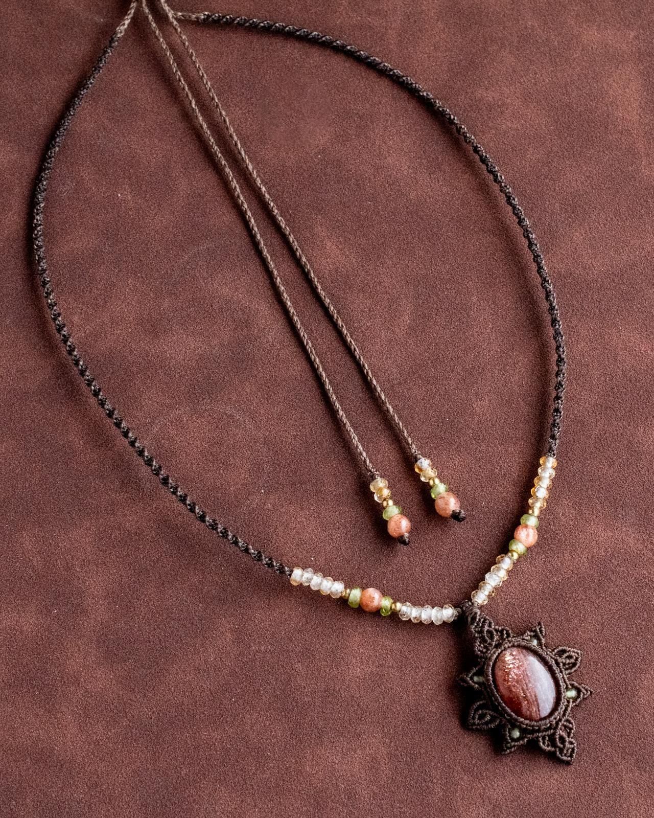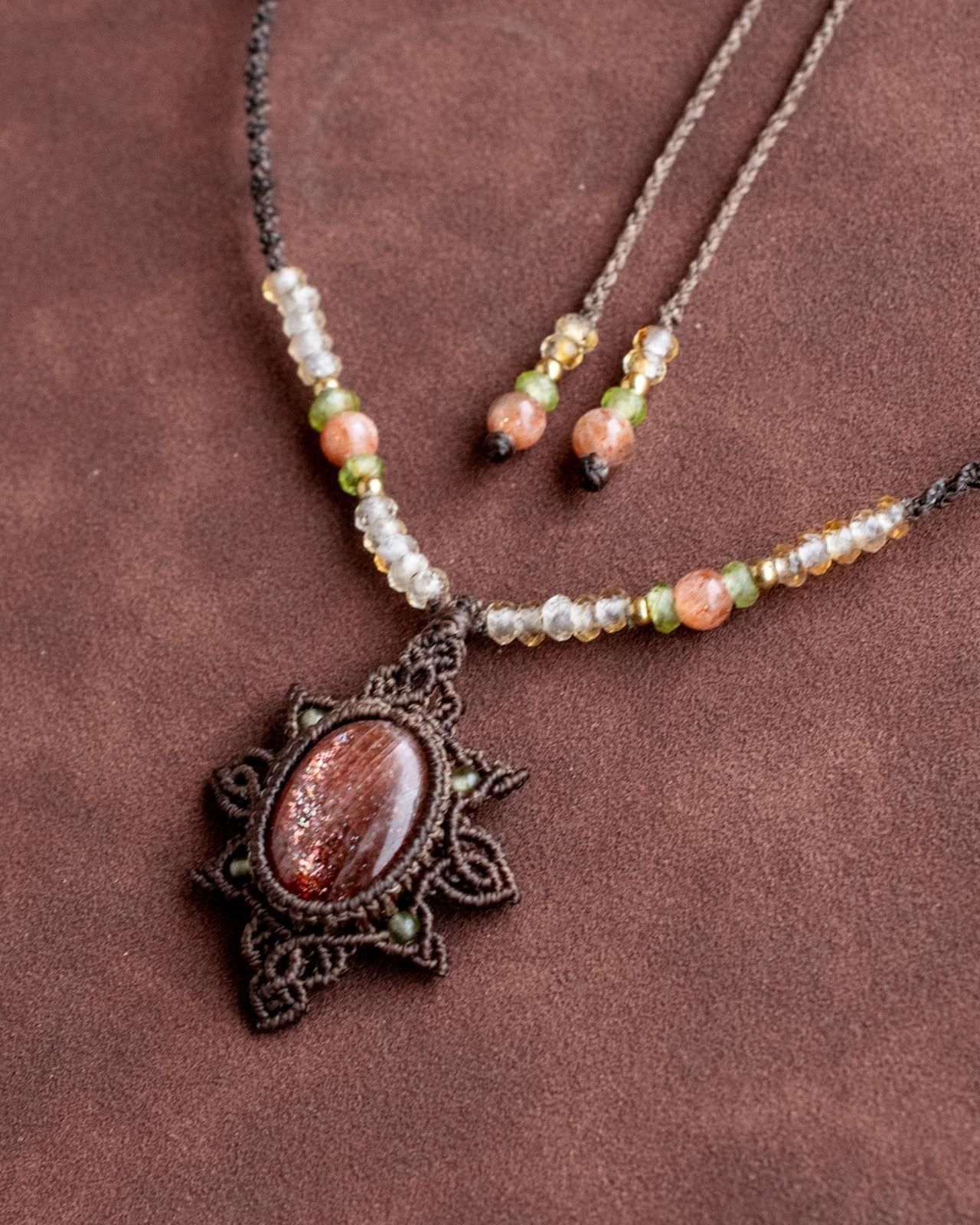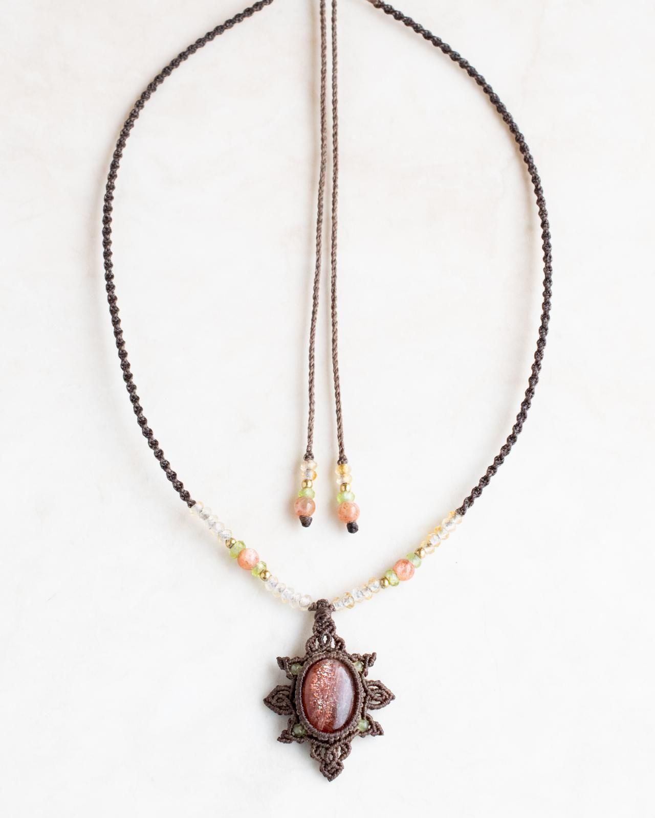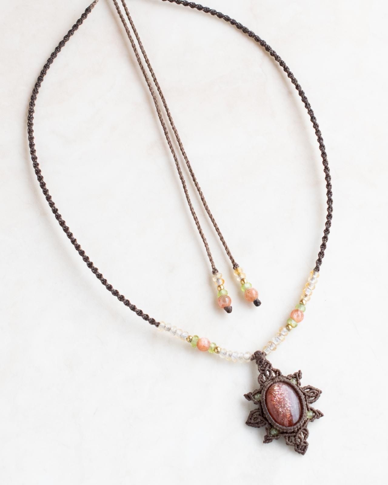 インド産のサンストーンを使ったマクラメペンダントを使ったマクラメネックレスです。