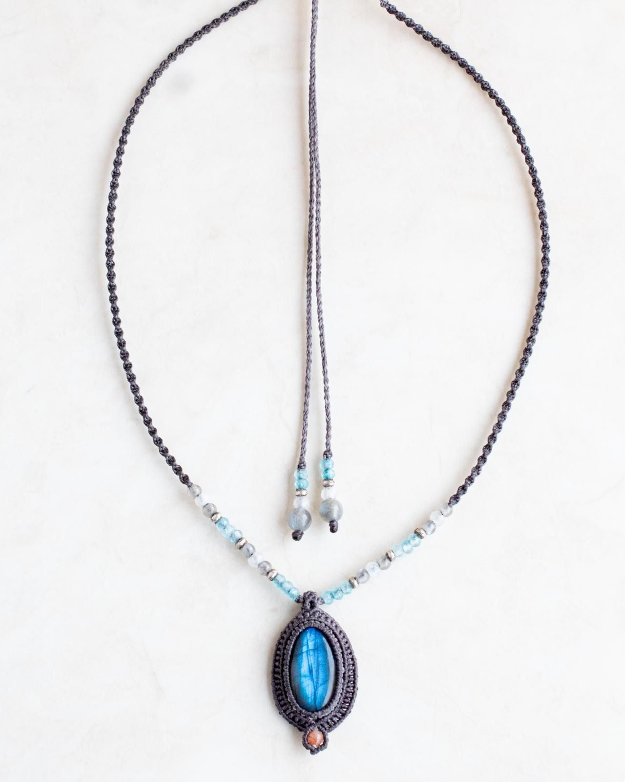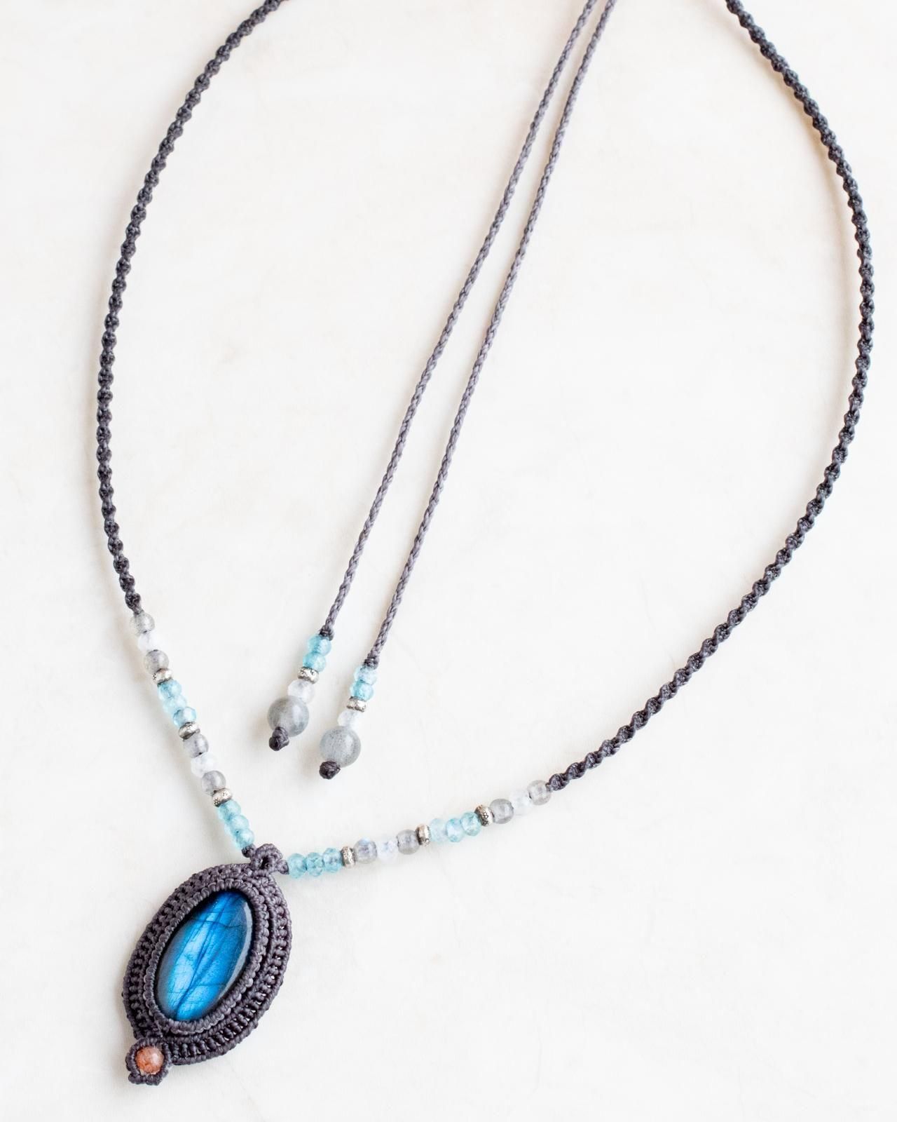 インド産のラブラドライトを使ったマクラメネックレスです。